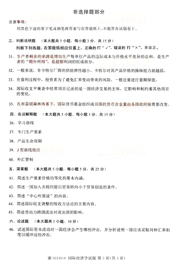 全国2014年10月自学考试《国际经济学》真题(精美word版)(五)