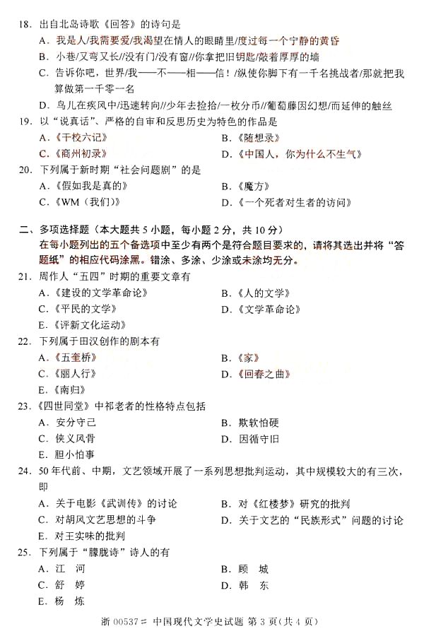 自考历年真题