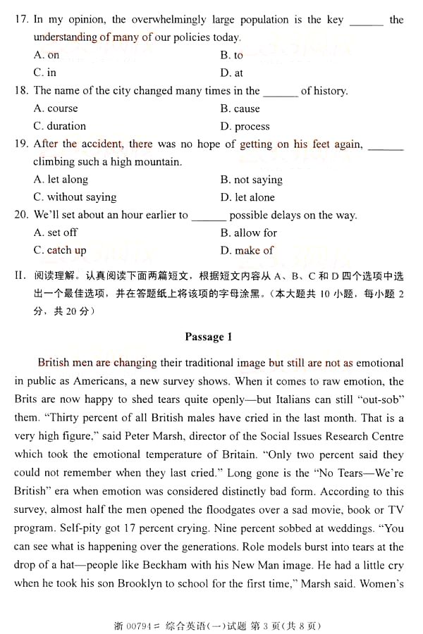全国2014年10月自学考试《综合英语(一)》真题(精美word版)(三)