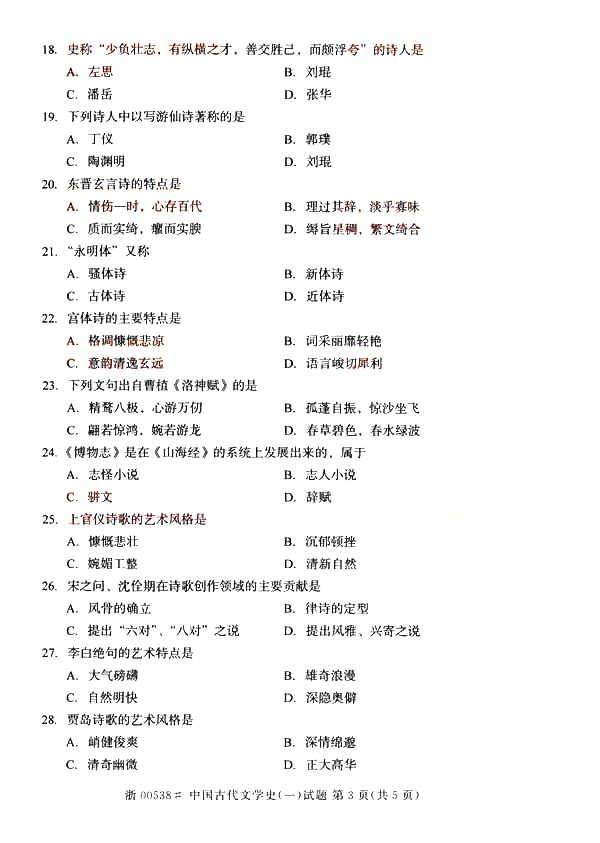 全国2014年10月自学考试《中国古代文学史(一)》真题(word下载版)(三)