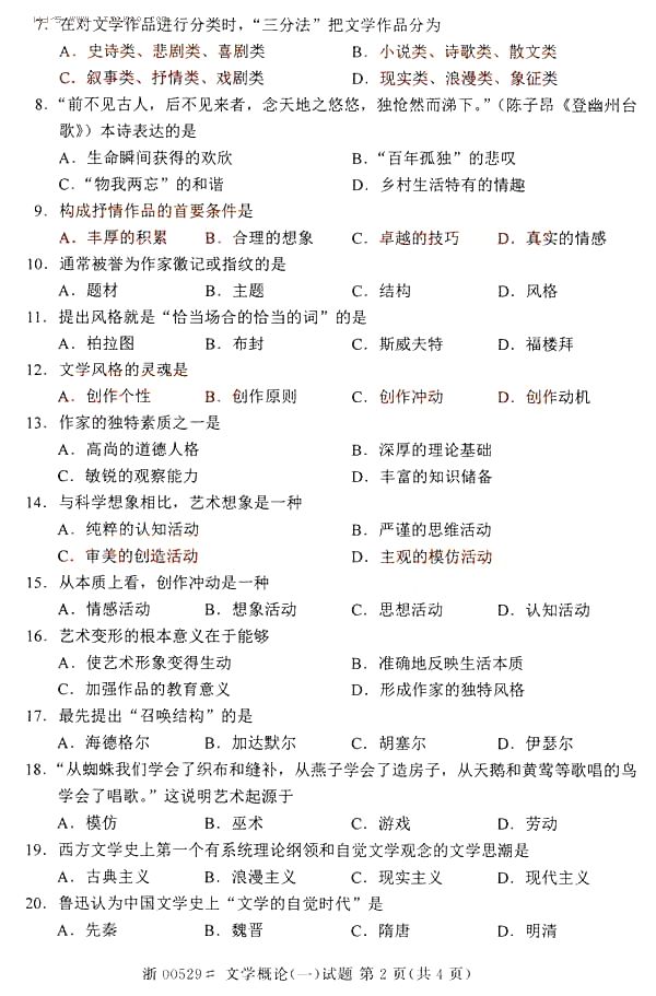 全国2014年10月自学考试《文学概论(一)》真题(完美word版)(二)