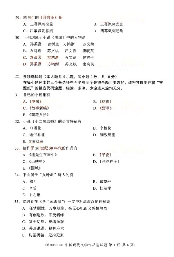 全国2014年10月自学考试《中国现代文学作品选》真题(清晰word版)(四)