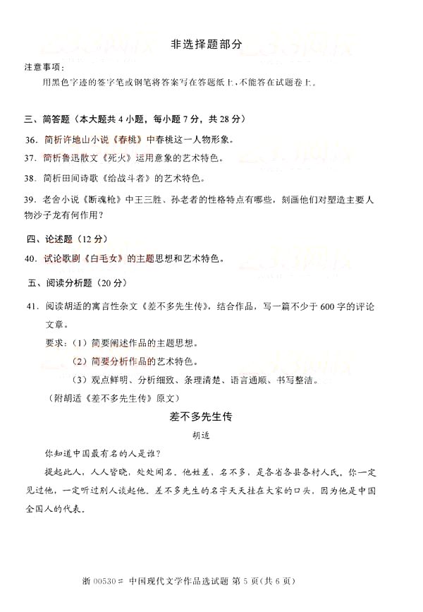 全国2014年10月自学考试《中国现代文学作品选》真题(清晰word版)(五)
