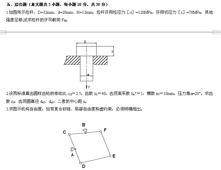 1.平面铰链四杆机构中,若各杆长度分别为a=40、b=60、c=60、d=70。当以a为机架,则此四杆机构为__________。