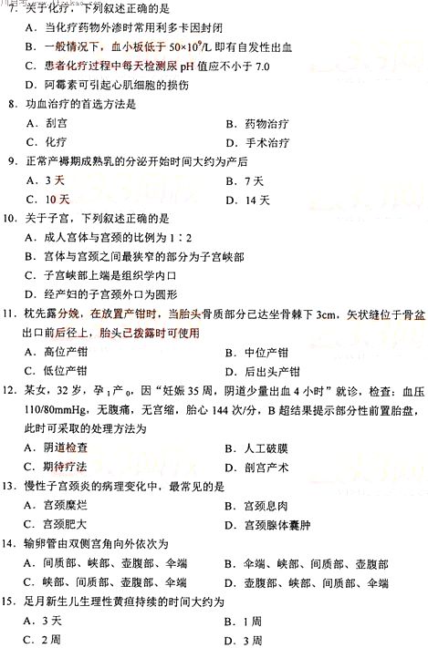 全国2014年10月自学考试《妇产科护理学(一)》真题(word下载版)(二)