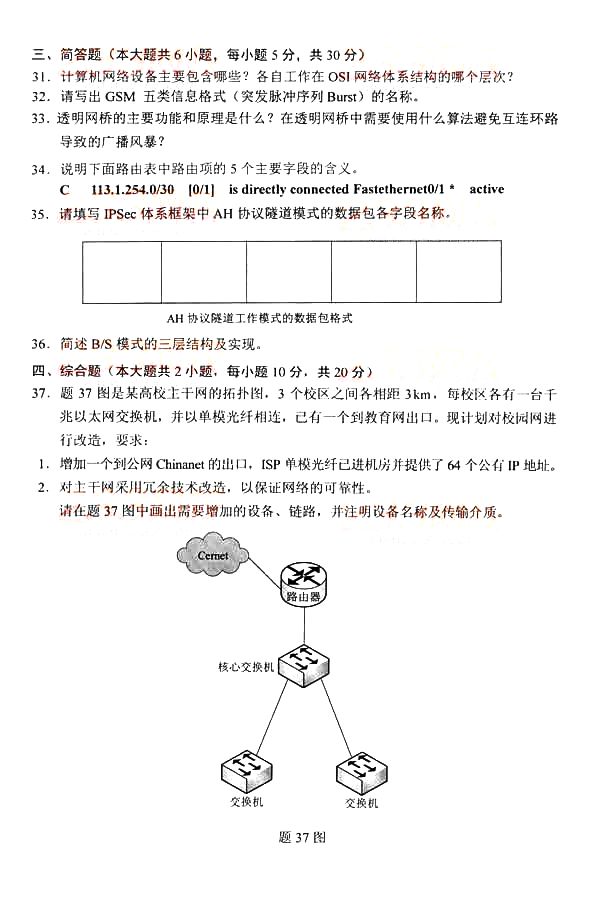 全国2014年10月自学考试《网络工程》真题(word下载版)(四)