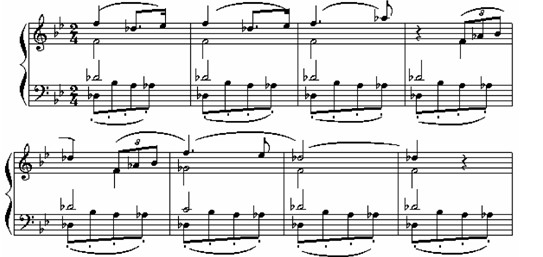 26.编配要求:将下列钢琴谱片段改编成为弦乐队重奏谱,原有的声部关系保持不变。