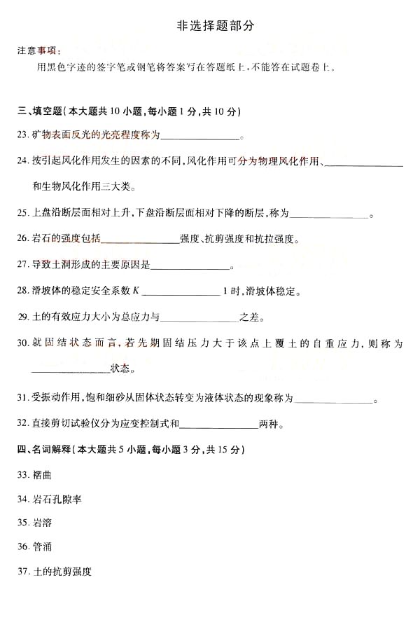 全国2014年10月自学考试《工程地质及土力学》真题(精美word版)(三)
