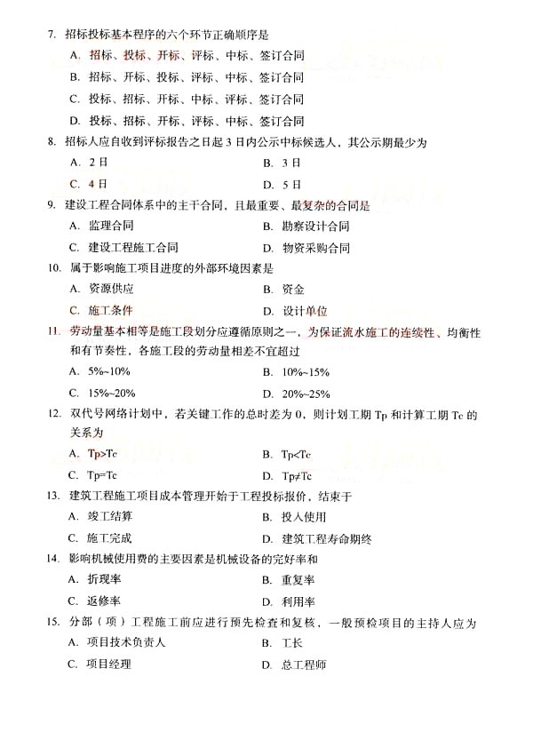 全国2014年10月自学考试《建筑经济与企业管理》真题(word下载版)(二)