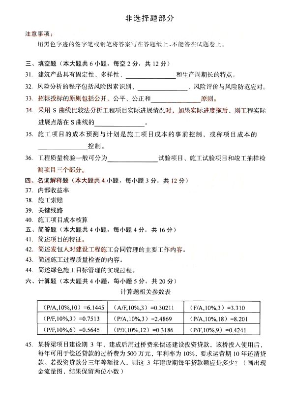 全国2014年10月自学考试《建筑经济与企业管理》真题(word下载版)(五)