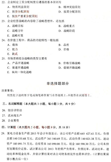 全国2014年10月自学考试《企业管理概论》真题(精美word版)(四)