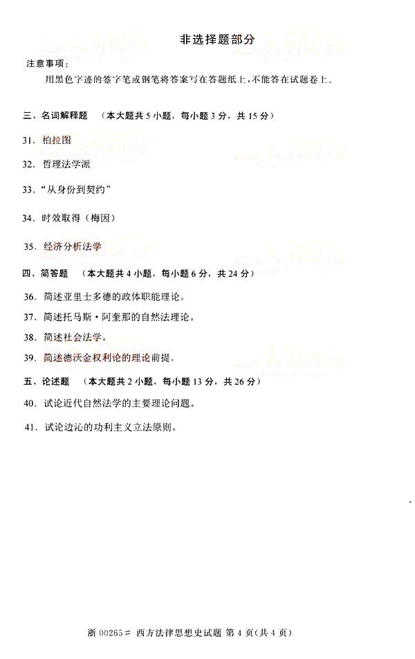 全国2014年10月自学考试试《西方法律思想史》真题(完整word版)(四)