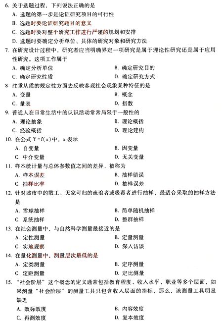 全国2014年10月自学考试《社会研究方法》真题(完整word版)(二)