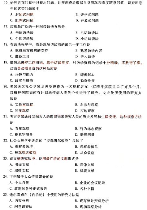 全国2014年10月自学考试《社会研究方法》真题(完整word版)(三)