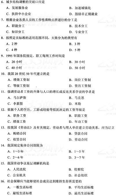 全国2014年10月高等教育自学考试劳动和社会保障概论真题(完美word版)(二)