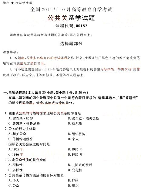 全国2014年10月自学考试《公共关系学》真题(完整word版)(一)
