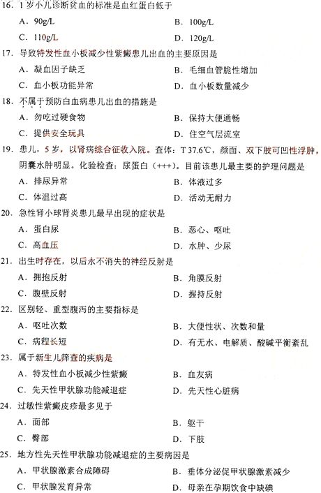 全国2014年10月自学考试《儿科护理学(二)》真题(完美word版)(三)