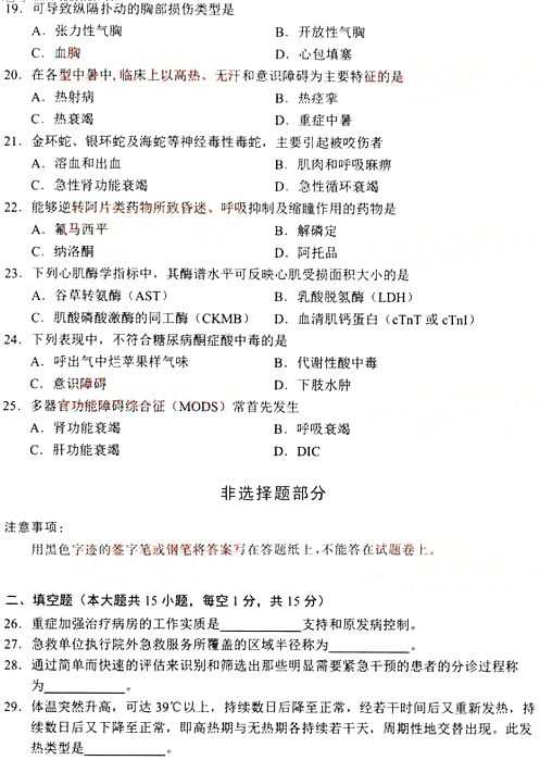 全国2014年10月自学考试《急救护理学》真题(精美word版)(三)