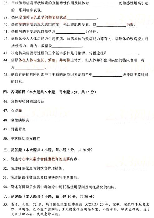 全国2014年10月自学考试《内科护理学(二)》真题(完美word版)(五)