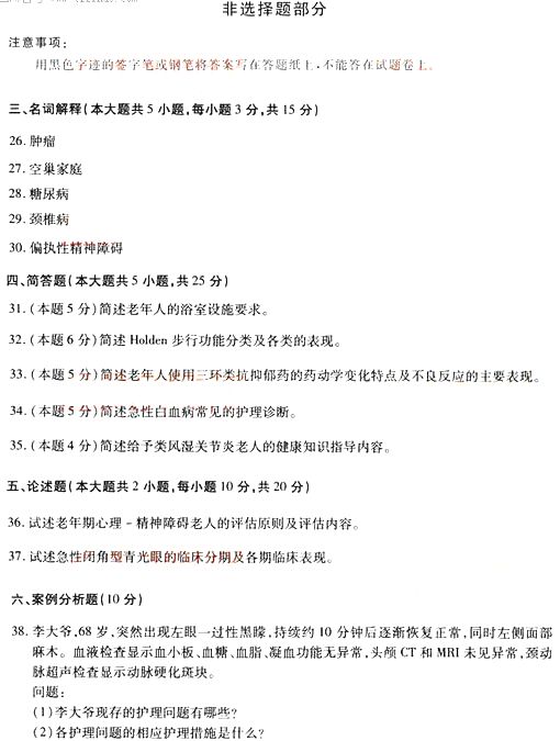 全国2014年10月自学考试《老年护理学》真题(完整word版)(四)