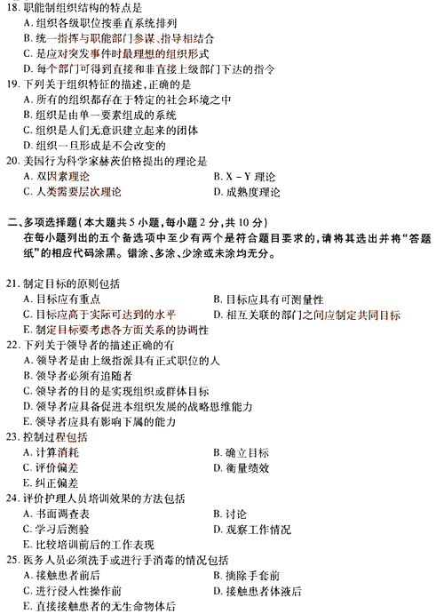 全国2014年10月自学考试《护理管理学》真题(清晰word版)(三)