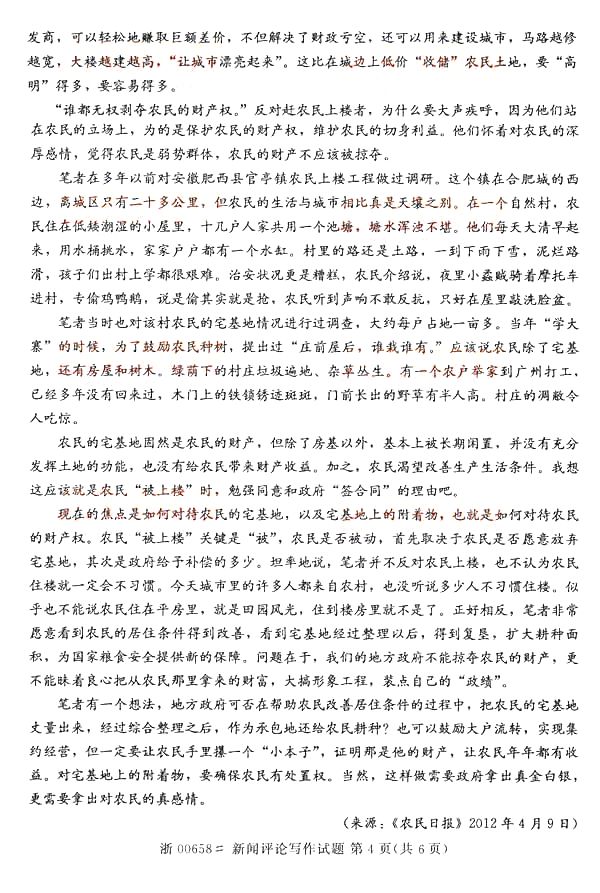 全国2014年10月自学考试《新闻评论写作》真题(打印word版)(四)