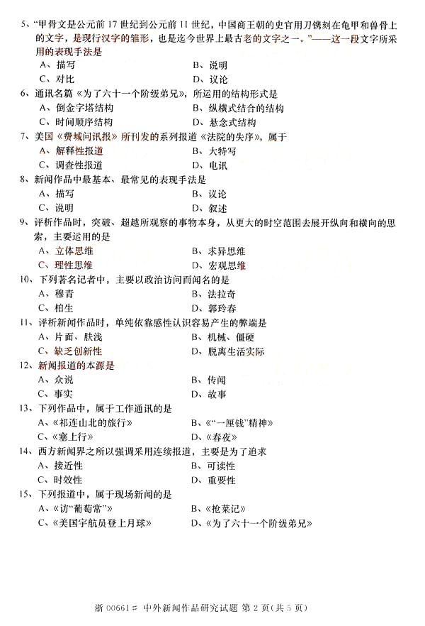 全国2014年10月自学考试《中外新闻作品研究》真题(精美word版)(二)