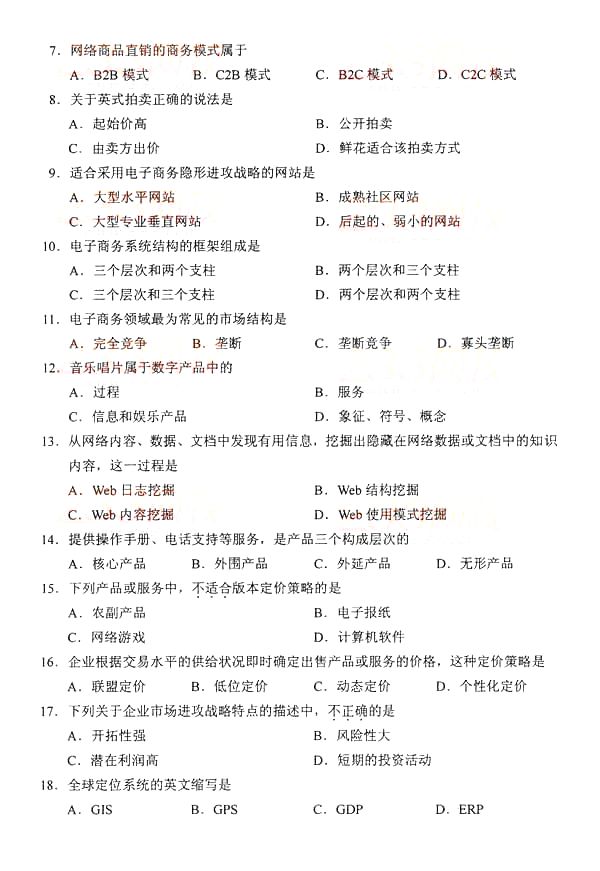 全国2014年10月自学考试《电子商务概论》真题(完整word版)(二)