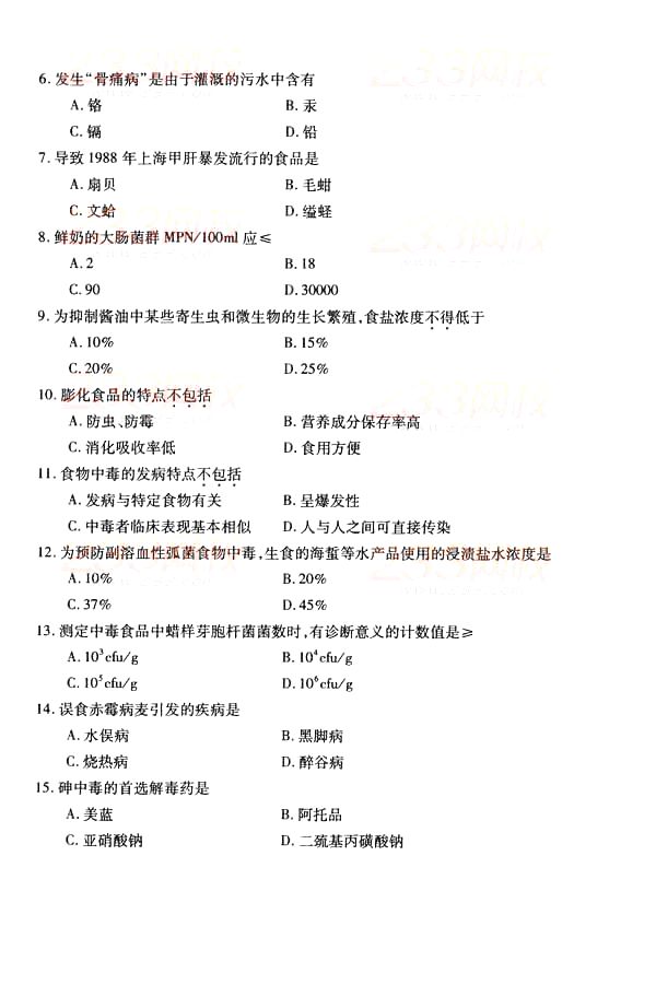 全国2014年10月自学考试《食品卫生学》真题(完美word版)(二)