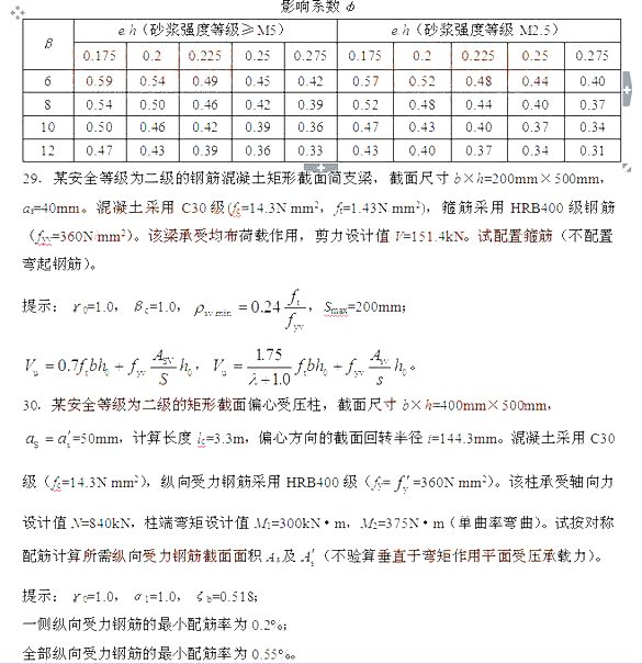 28.某正方形截面偏心受压砖柱,截面尺寸b×h=490mm×490mm,计算高度H0=2.94m,该柱用MU10烧结粘土砖和M5混合砂浆砌筑(f=l.5N/mm2)。承受轴向力设计值N=108kN,弯矩设计值M=10.58kN·m,试验算受压承载力是否满足要求。