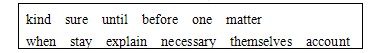 41. doubt 42. message 43. butter 44. dash