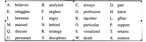 I. The following paragraphs are taken from the textbooks, followed by a list of words or expressions marked A to X. Choose the one that best completes each of the sentences and write the corresponding letter on your Answer Sheet. One word or expression for each blank only. (12 points,0.5 point for each)