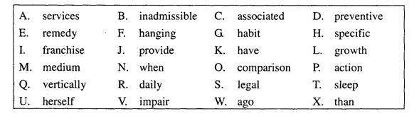 II. In this section, there are fifteen sentences with a blank in each, followed by a list of words or expressions marked A to X. Choose the one that best completes each of the sentences and write the corresponding letter on your Answer Sheet. One word or expression for each blank only. (15 points, 1 point for each)