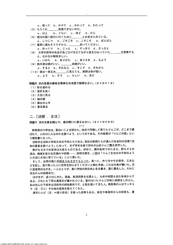 浙江省2006年1月自考高级日语(二)试题 (精美word版)