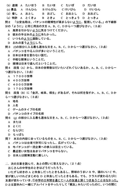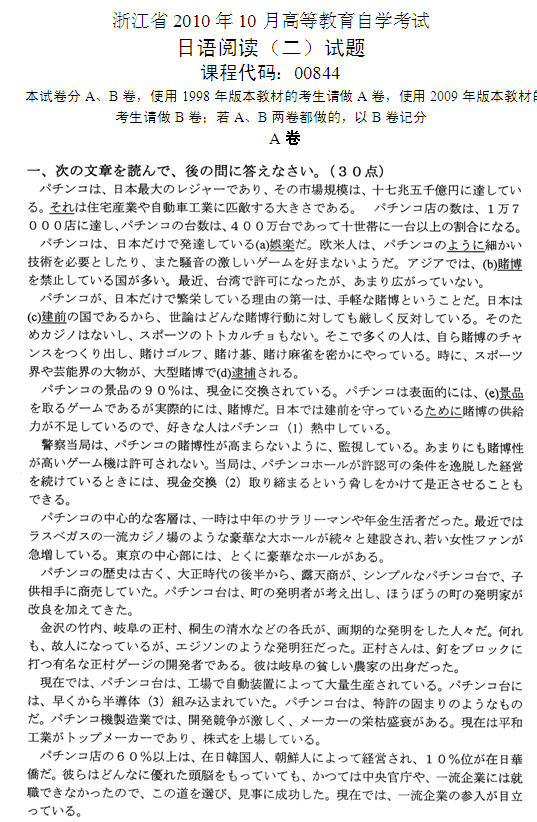 浙江省2010年10月自学考试日语阅读(二)试题 (清晰word版)
