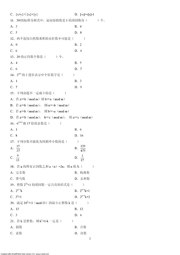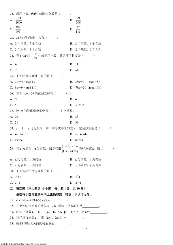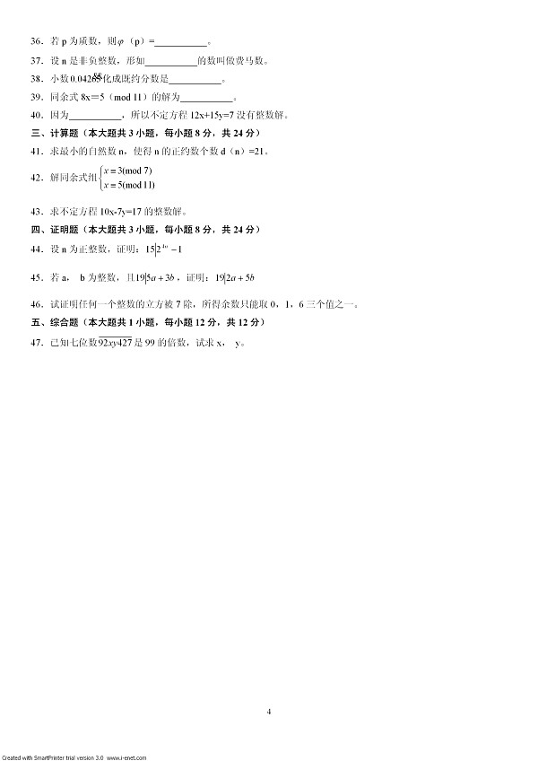 浙江省2002年7月自考数论初步试题..